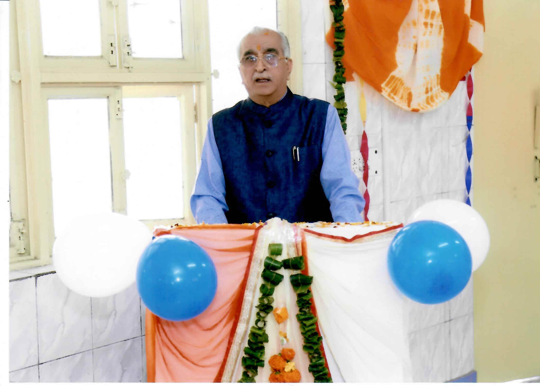 Shri B R Sharma leading the candle lights with the students